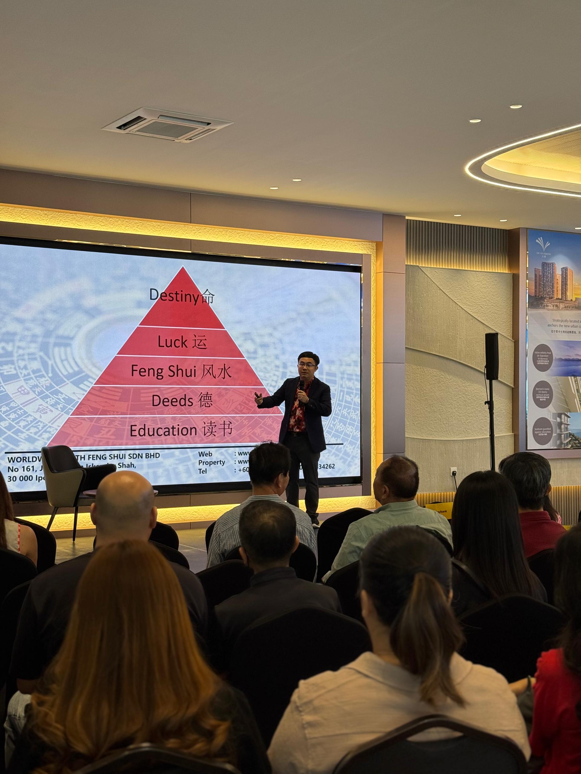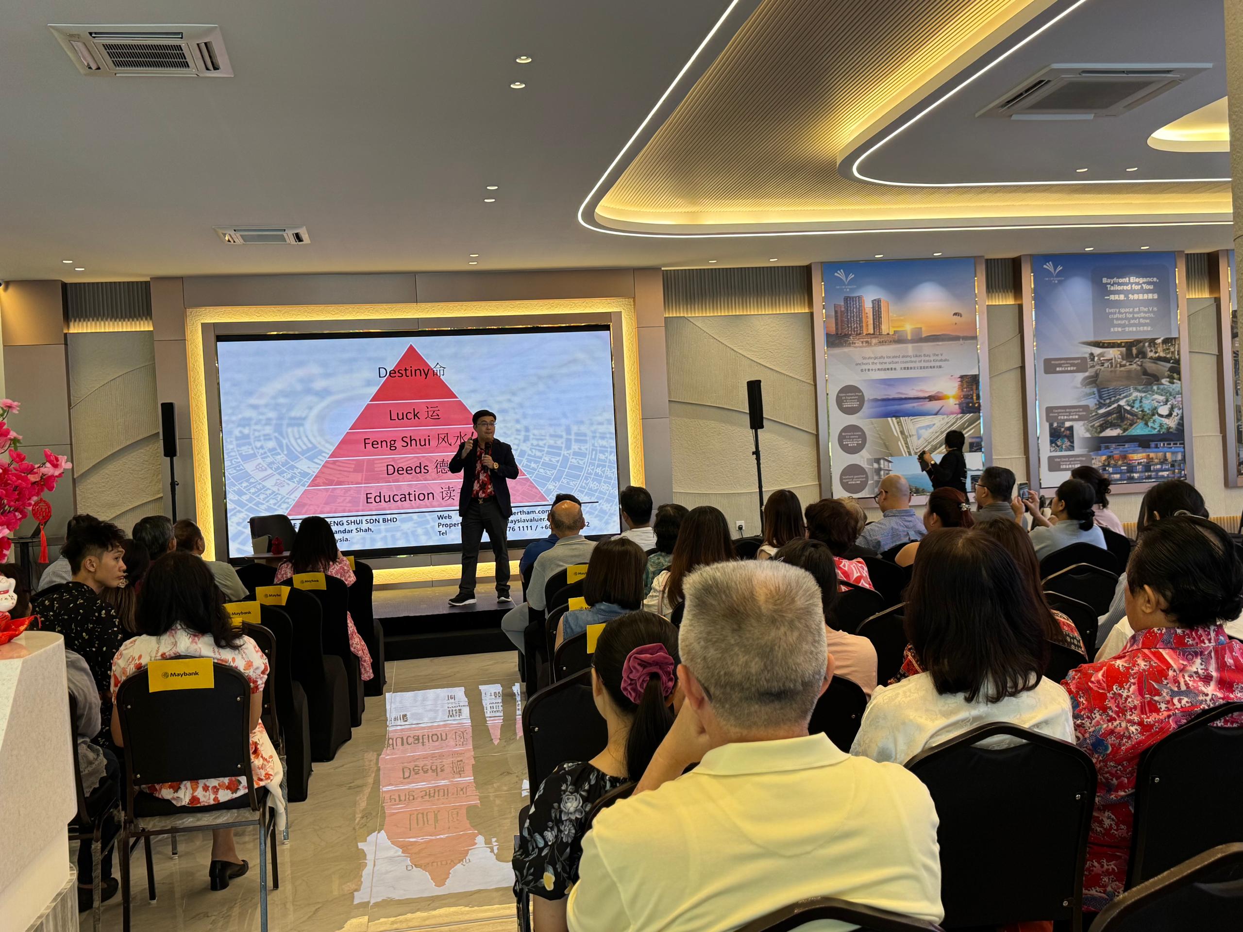 In 2026, Master Dr. Sr Tham was invited to present a professional Feng Shui seminar for Jesselton International in partnership with Maybank Group, held at the group’s signature project which features the tallest building in Borneo. The seminar was conducted in a formal and elegant setting, providing a high-class environment suitable for a professional talk attended by invited guests, business associates, and property-related clients.